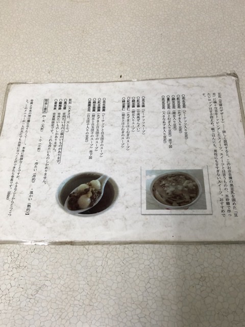 私たちは、黒豆漿(黒豆の甘いトウジャン)、酸梅湯(梅味の甘酸っぱいジュース)、薏仁豆花(はとむぎのトウファ)とお目当ての黒飯團(黒いおにぎり)を注文